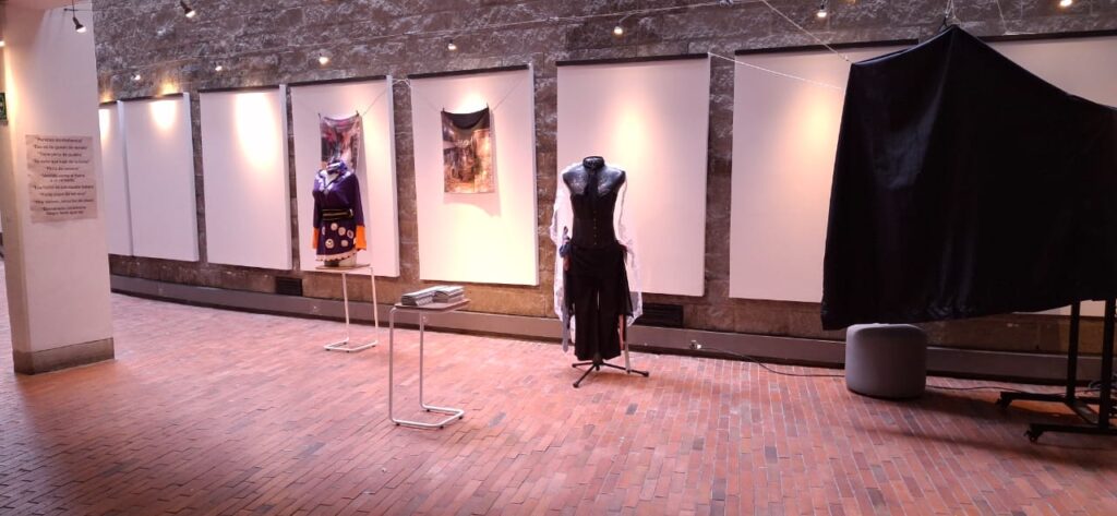 Borders that expand and contract like the garment presented in the piece Clothing as (Non)Border, a work that emerges from the close environment of Alejandra Martinez. She grew up watching how her mother’s bedsheet workshop became a workspace and source of livelihood for migrant women and youth without education or job opportunities in Bogotá. Through sewing, many of them found not only income but also a place of affection, care, and survival. Alejandra states that this gesture of collective care runs through the piece and roots it in an ethic of accompaniment and listening. Places like the one Alejandra brings us, through a garment constructed and composed from the stories of people who have experienced exclusion in Bogotá due to migration, racialization, or belonging to marginalized sectors, bring us closer to the dark seams of the city inhabited amid struggles and violent borders. But they also allow us to see the possibilities of other ways of coming together and rebuilding lives through everyday practices.